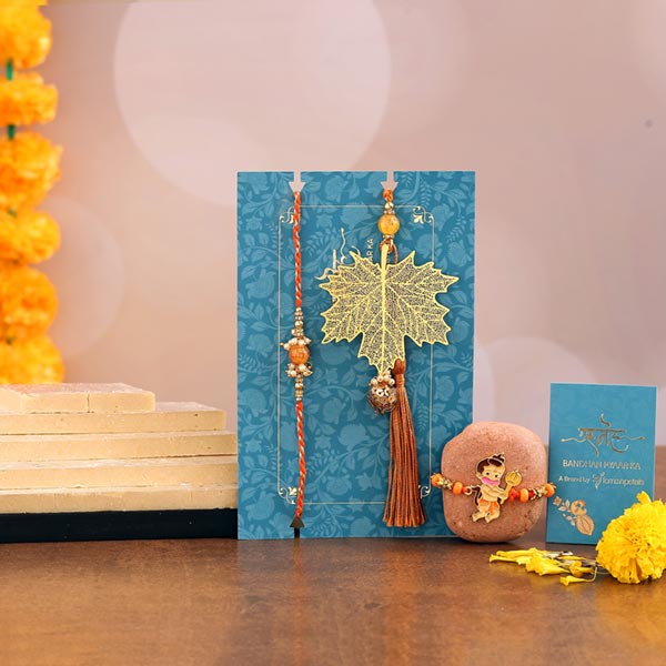 Product Details One Bhaiya Bhabhi Lumba Rakhi Set, This modern design rakhi set displays maple leaf detailing, One Bal Hanuman Kids Rakhi, This Rakhi is categorically designed for kids who are fond of devotional cartoon characters,