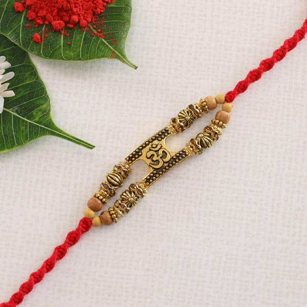 Traditional Golden Pearl Rakhi And 3 Pcs Ferrero Rocher