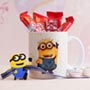 Product Details: • Rakhi Type: Minion Kids Rakhi • Set Type: Single • Recipient: Brothers • Color: Multicolored • Material Used: Fabric, plastic, ribbon, and stylish band. • Brand: Sendrakhi.com • Roli & Chawal with containers are included Chocolates • 4 Kit Kat chocolates, each of 12.8gm Mug • One minion mug
