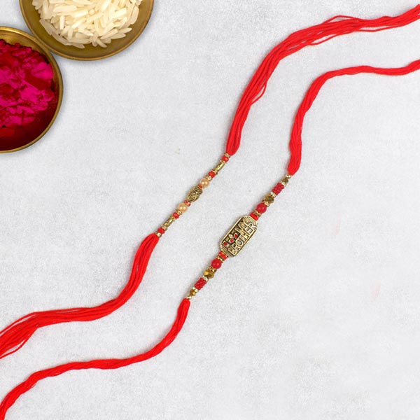 Traditional Golden Pearl Rakhi And 3 Pcs Ferrero Rocher