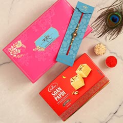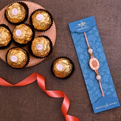 Product Details One Navrattan Bracelet Style Rakhi, This designer rakhi displays navrattan pearls for a striking look, Toblerone Chocolate Milk Bar, Weight- 100 gms, Complimentary Roli Chawal packed in a small card, Beautifully packed in Sneh Box