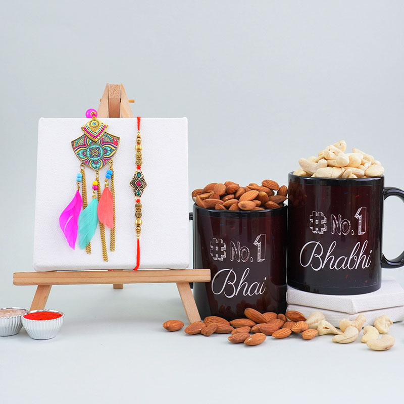 Number One Mugs with Dry Fruits N Bhaiya Bhabhi Rakhi