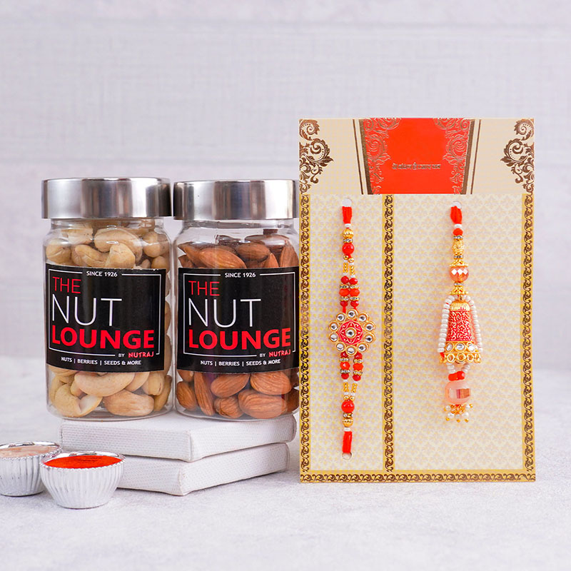 Nut Lounge Dry Fruits with Combo of Bhaiya Bhabhi Rakhi