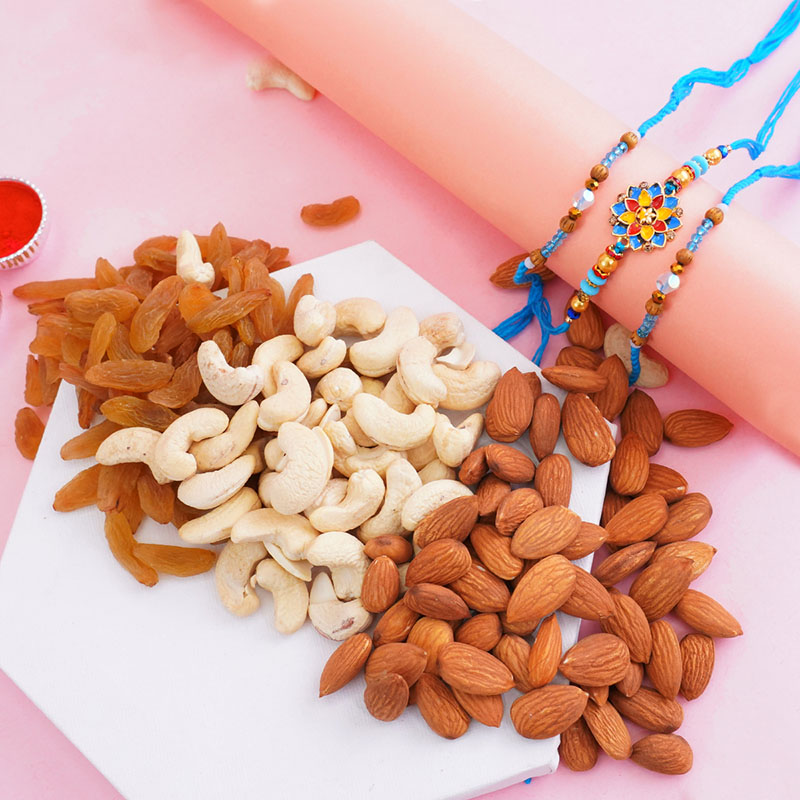 Puja Thali withTwo Rakhis N Nut Lounge Dry Fruits