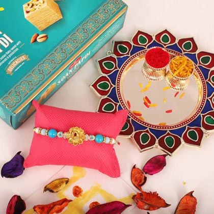 Caged Bird Bracelet Lumba Rakhi Set With Soan Papdi