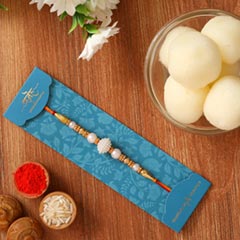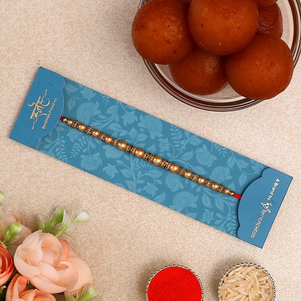 Product Details One Pearl Mauli Rakhi, One Gulab Jamun Tin- 1 Kg, Complimentary Roli Chawal packed in a small card, This Rakhi is packed & delivered in a Beautiful Traditional Sneh Rakhi Box,