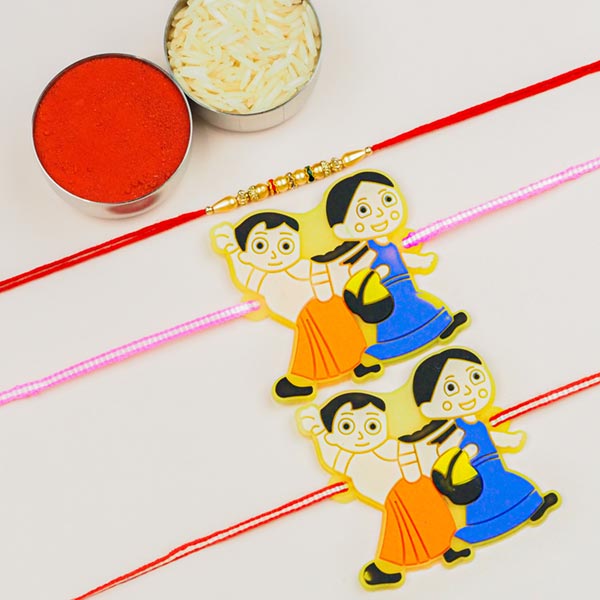 Pearl & Cute Kids Cartoon 3 Rakhi Set