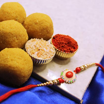 Ethnic Lumba Rakhi Set & Kids Rakhi With Soan Papdi