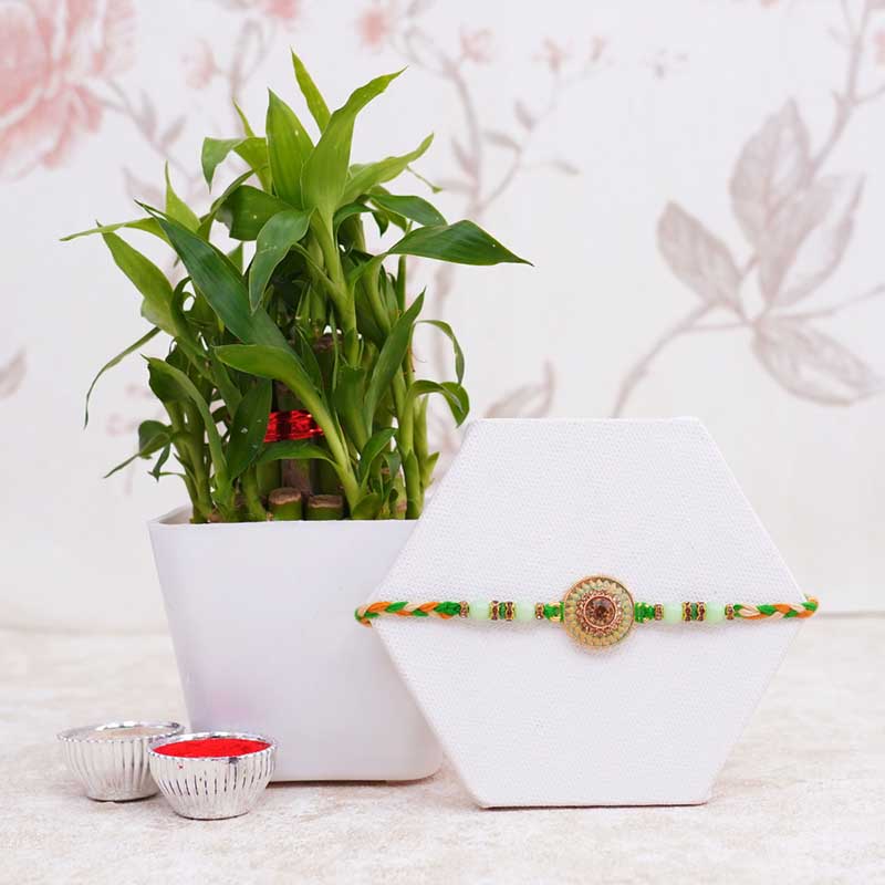 Ethnic Stone Rakhi with Lucky Bamboo N Mug