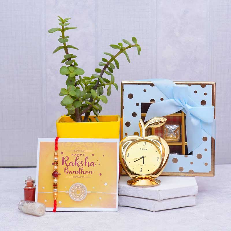 Designer Bhaiya Bhabhi Rakhis with Jade Plant N Chocolates