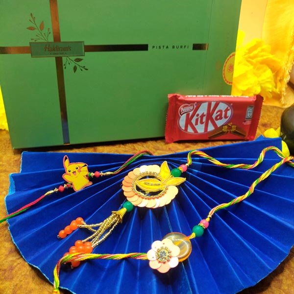 Bhai Bhabi Set with Pikachu Rakhi as shown in Picture.