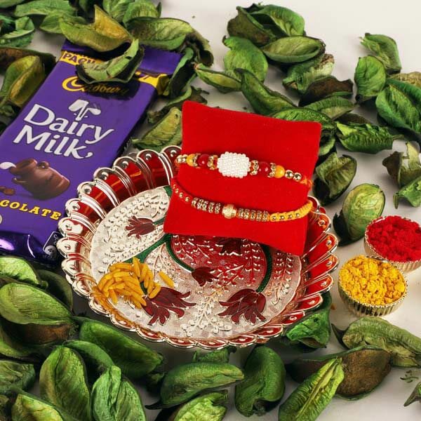 Rakhi Pair with Thali & Dairy Milk