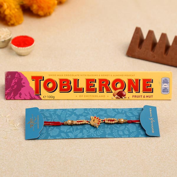 Product Details One Red Peacock Designer Rakhi, This designer rakhi highlights beautiful red peacock making it an irresistible pick, Toblerone Chocolate Milk Bar, Weight- 100 gms, Complimentary Roli Chawal packed in a small card, Beautifully packed in Sneh Box