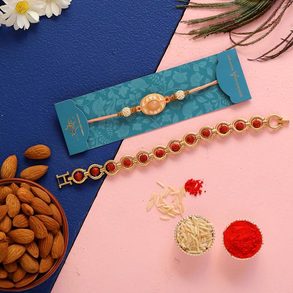 Product Details One Peach Stone Rakhi, This rakhi highlights a peach stone for an appealing look, One Rudraksha Bracelet Style Rakhi, This bracelet style rakhi highlights Rudraksha for an auspicious look, Almonds- 100 gms,