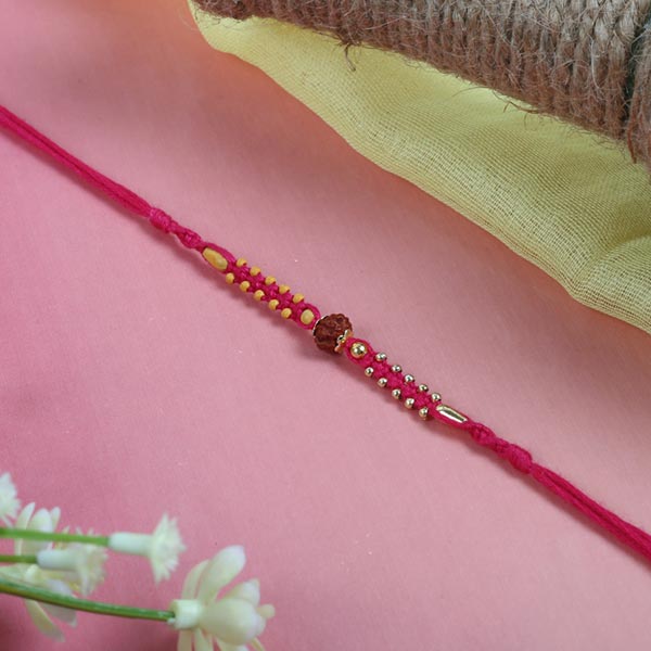 Om And Rudraksha Bracelet Rakhi With Soan Papdi