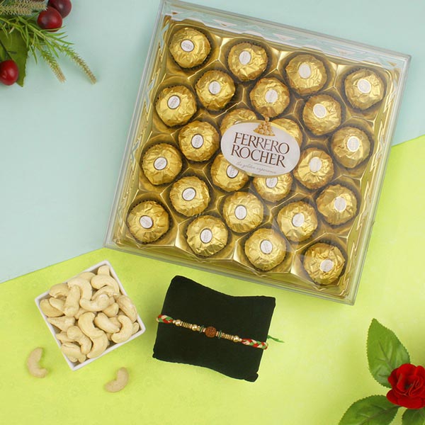 Rudraksha Rakhi with Ferrero Rocher Chocolate & Cashew Nut For UK