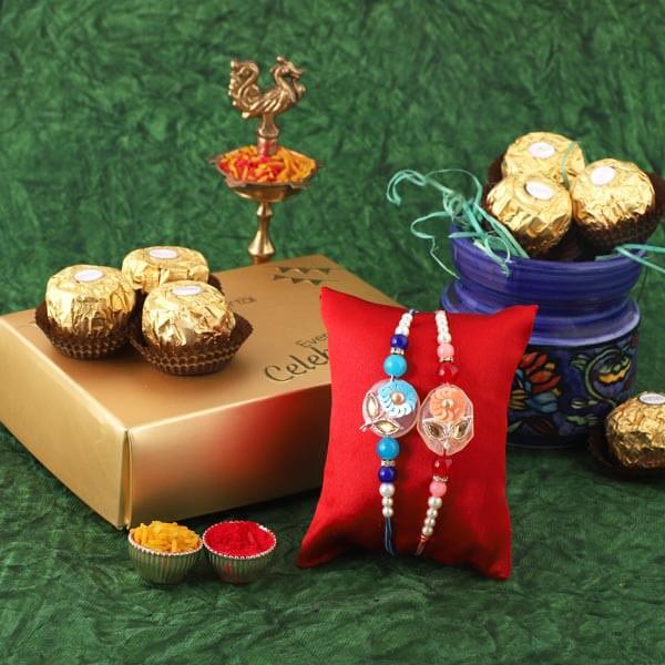 Peacock Feather Jhumki Style Lumba Rakhi Set