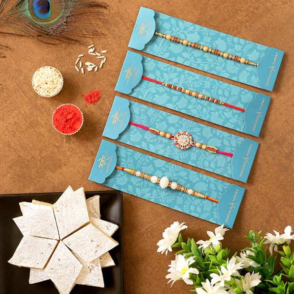 Product Details One White Pearl Rakhi, This rakhi showcases white pearl detailing for a serene look, One American Diamond Flower Rakhi, , One Pearl Beads Rakhi, This Rakhi is intricately designed with pearls and beads, Kaju Katli- 250 gms,