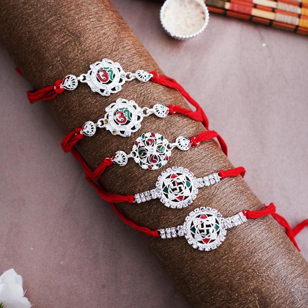 Send Rakhi »  Silver Rakhi Online » Set of Five Silver Rakhis
