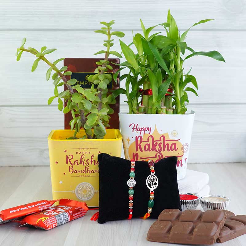 Bhaiya Bhabhi Rakhi with Potted Jade Plant Combo