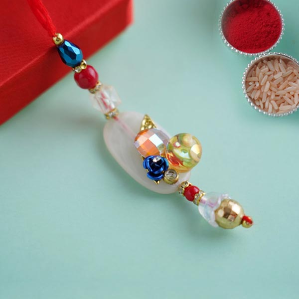 Ethnic Green Pearl And Lumba Rakhi Set With 3 Pcs Ferrero Rocher