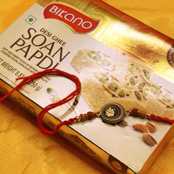 Dancing Peacock Jhumki Lumba Rakhi Set With Soan Papdi