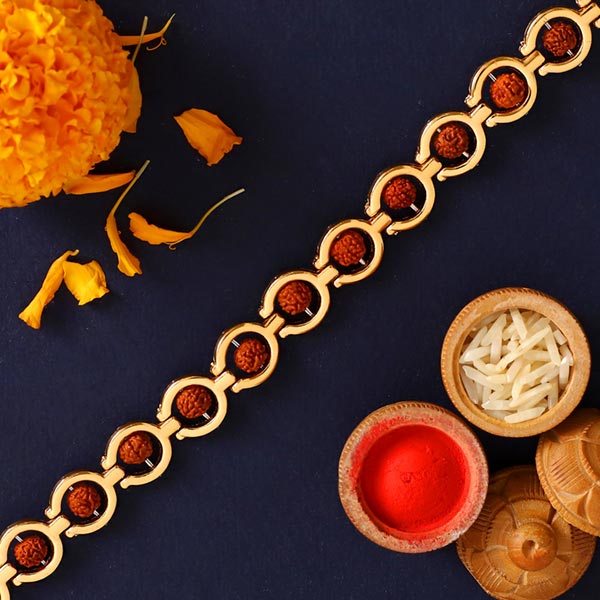 Product Details One Rudraksha Bracelet Style Rakhi, This devotional rakhi highlights rudraksha detailing for a divine look, Complimentary Roli Chawal packed in a small card, This Rakhi is packed in a beautiful Sneh envelope