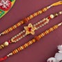 Product Overview: • Rakhi Type: Two Rudraksha Rakhis and One Stone Rakhi • Set Type: Set of 3 Rakhi • Recipient: Brothers • Color: Multicolored • Material Used: Colorful beads, stones, Gold-plated metal, and silk thread • A pack Roli & Chawal and containers are included with Rakhi set