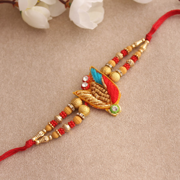 Product Overview • Type of Rakhi: Zardosi Rakhi • Material used: Zardosi, beads, and stones • Set type: Single • Recipient: Brother • Color: Red Product Description Zardosi is an intricate style of embroidery that is very popular in India. This rakhi is made using zardosi handwork and it is decorated using multi colored threads, gold plated beads, stones, and other decorative items. If you are seeking a designer rakhi for your fashionista brother for this Raksha Bandhan, then this rakhi is just for you. This designer rakhi will really express your love and affection for your brother in the best way and make this festival a very memorable one. So, just place your order for this stunning rakhi if you want that to happen.