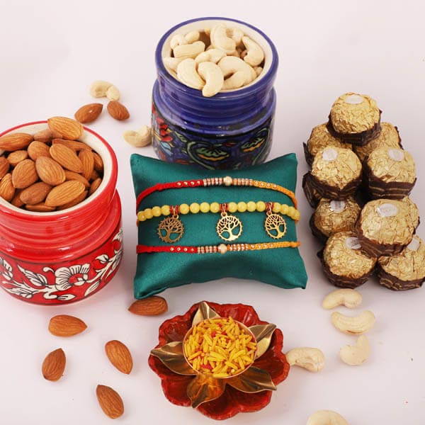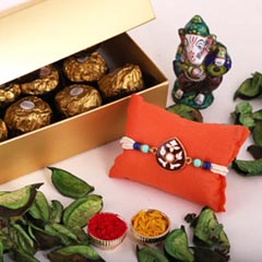 Navrattan Bracelet Pearl Rakhi And 3 Pcs Ferrero Rocher