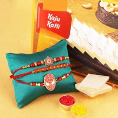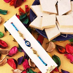 Blue Pearl And Lumba Rakhi Set With Kaju Katli