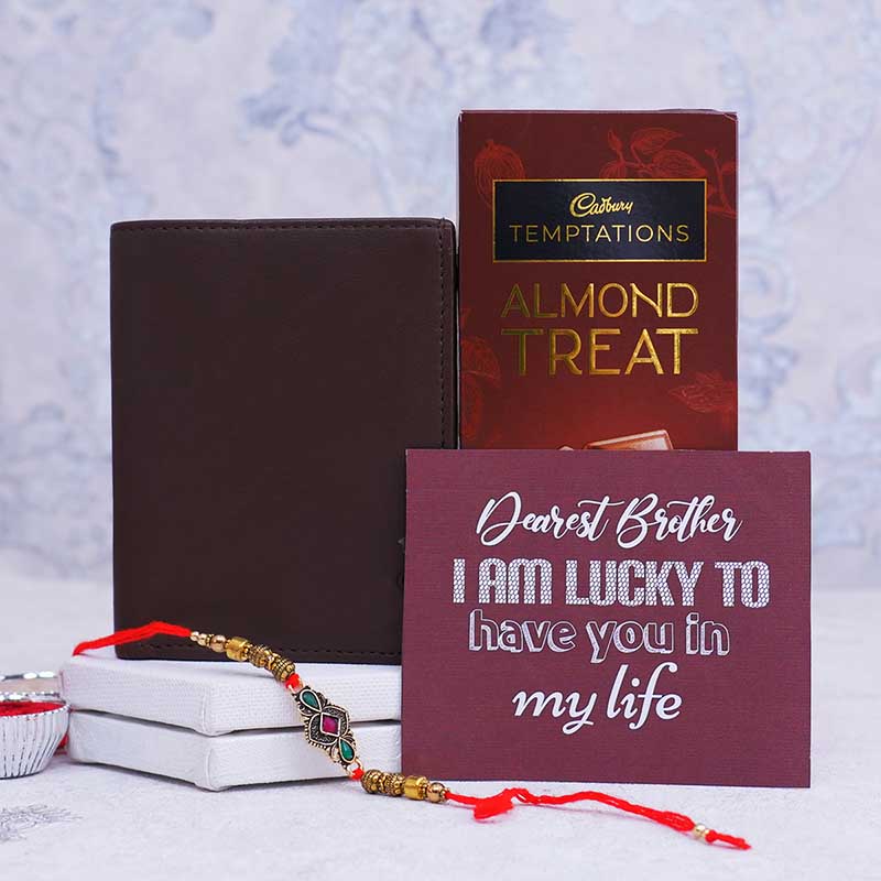 Perfect Rakhi Hamper with Two Golden Rakhis