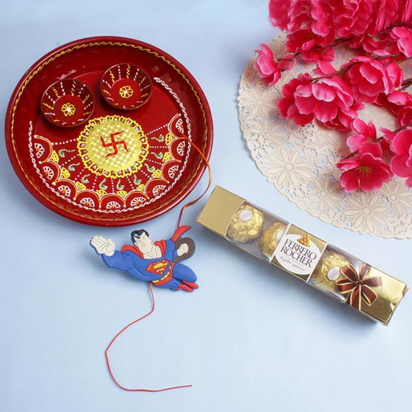 Superman Kids Rakhi with Puja Thali & Chocolates For UK