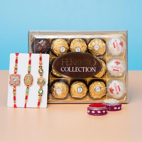 Three Lucky Rakhi Set with Ferrero Rocher Chocolate - For Europe