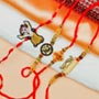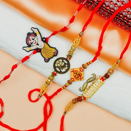 Set of 4 Rakhis (1 Trishul Rakhi, 1 Om Rakhi, 1 Veera Rakhi & 1 Chota Bheem Rakhi))