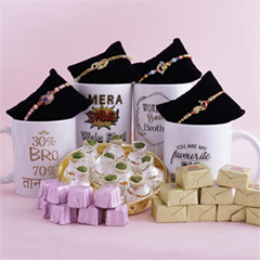 Bhaiya Bhabhi Rakhi N Mugs Set with kaju Katli