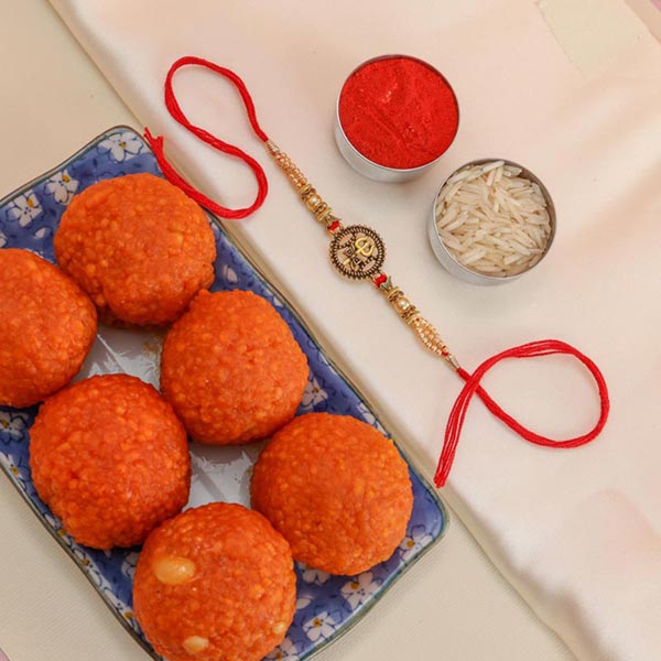 Trishul Rakhi With Motichoor Laddoo