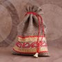 Rakhi • Rakhi Type: AD Rakhi • Set Type: Set of Two • Recipient: Brothers • Color: Multicolored • Material Used: Silver-platted metal, beads, stones, and silk threads • A packet of Roli and Chawal with containers Dry fruits • 200 gm Resins in a desigenr potli