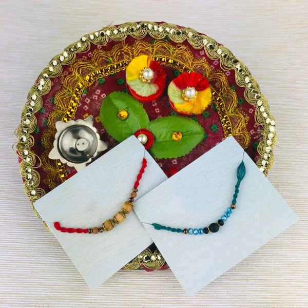 Two Rakhi Set With Traditional Thali