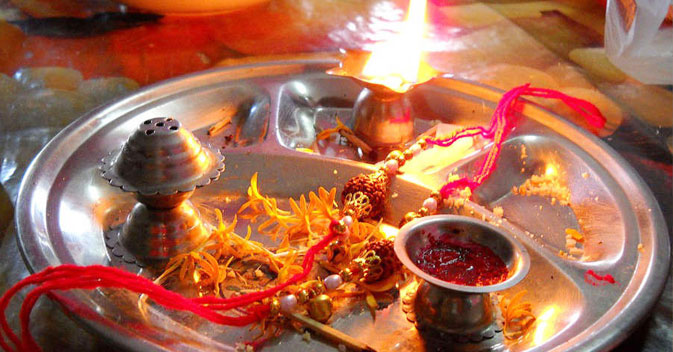 After taking a bath, both brothers and sisters worship God Raksha and ancestors. They pray for each other well-beings from God. It is believed that doing worship of Raksha on this special day makes them happy throughout the year and the God protects your brother and sister from the evil eyes.